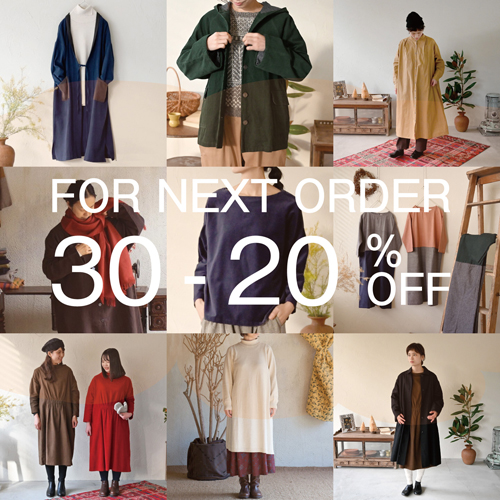 30-20%OFFにてお求めいただける「FOR NEXT ORDER」コーナー。